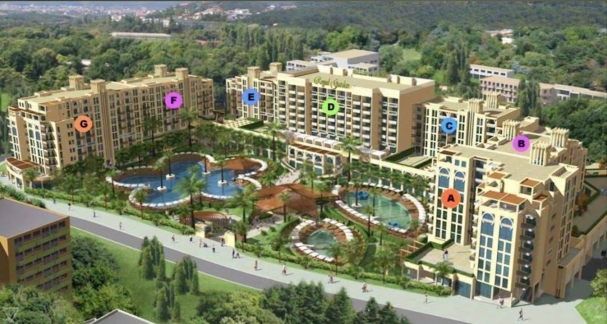 Mieści się na 4 piętrze budynku G kompleksu „Royal Beach” przy plaży w Słonecznym Brzegu. W apartamencie w każdym pokoju jest klimatyzacja, telewizor i WI-FI.