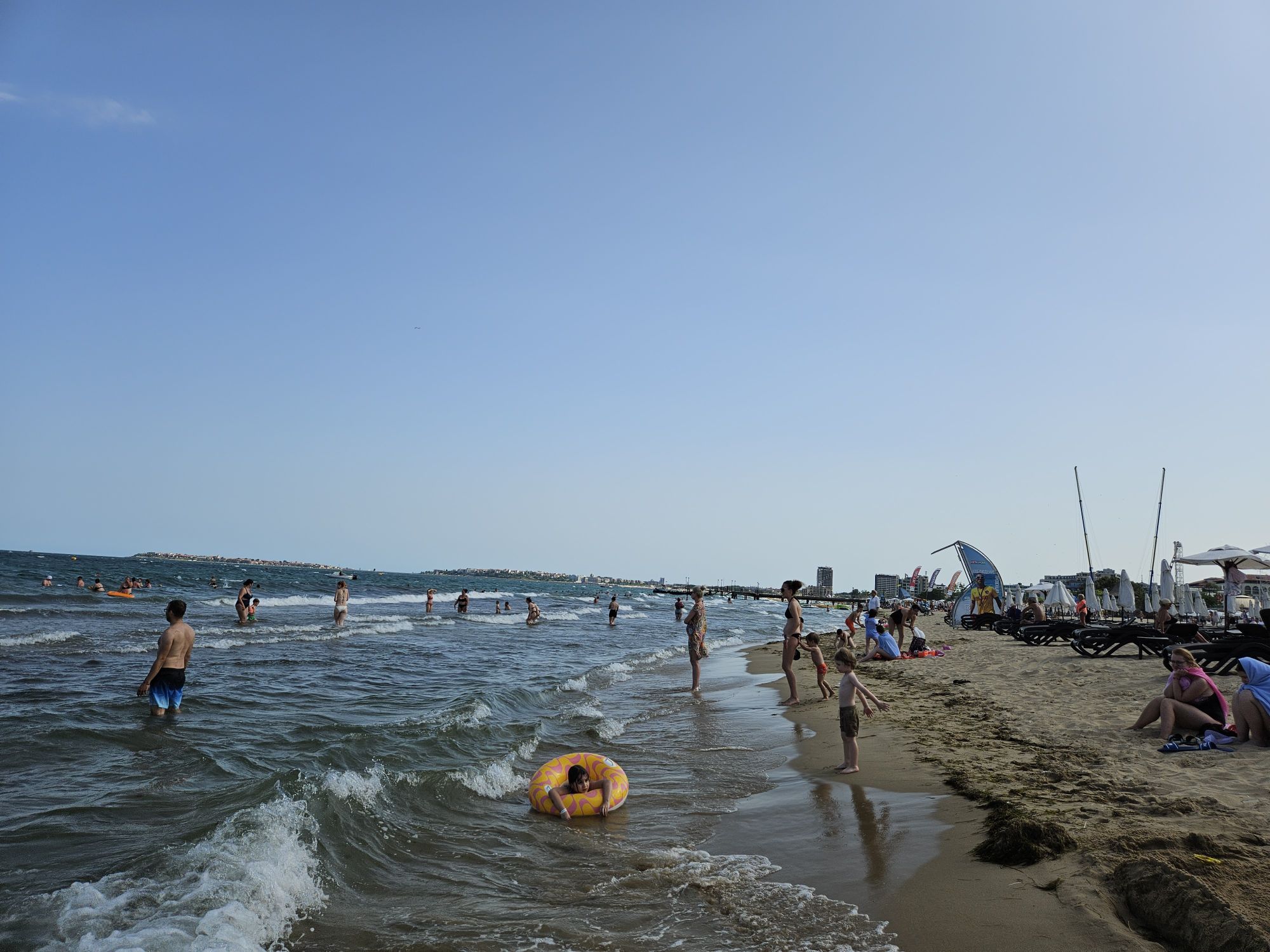 Szeroka piaszczysta plaża 3 minuty pieszo od apartamentu.